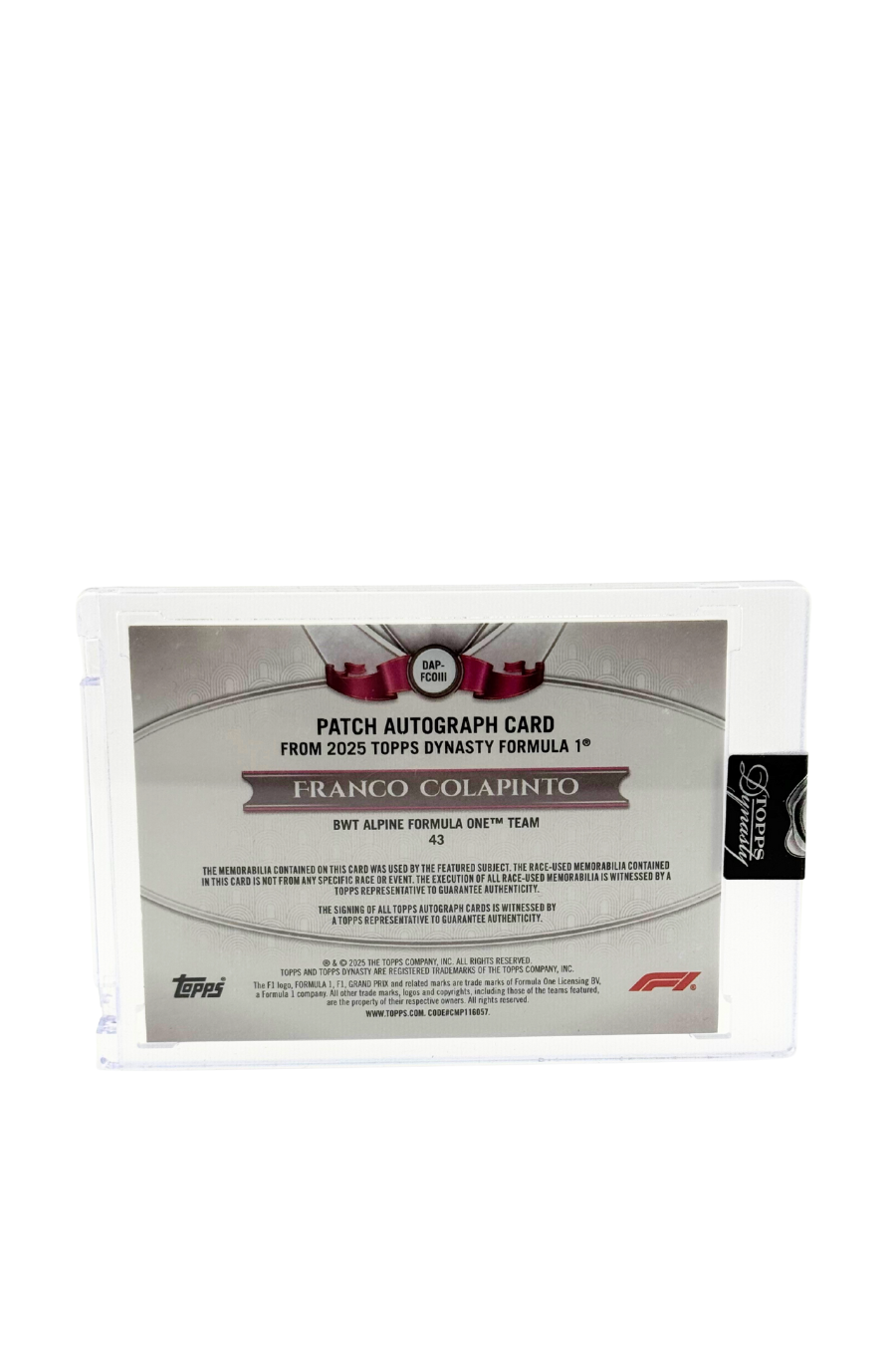 2025 Topps Dynasty Franco Colapinto Patch Auto #1/5