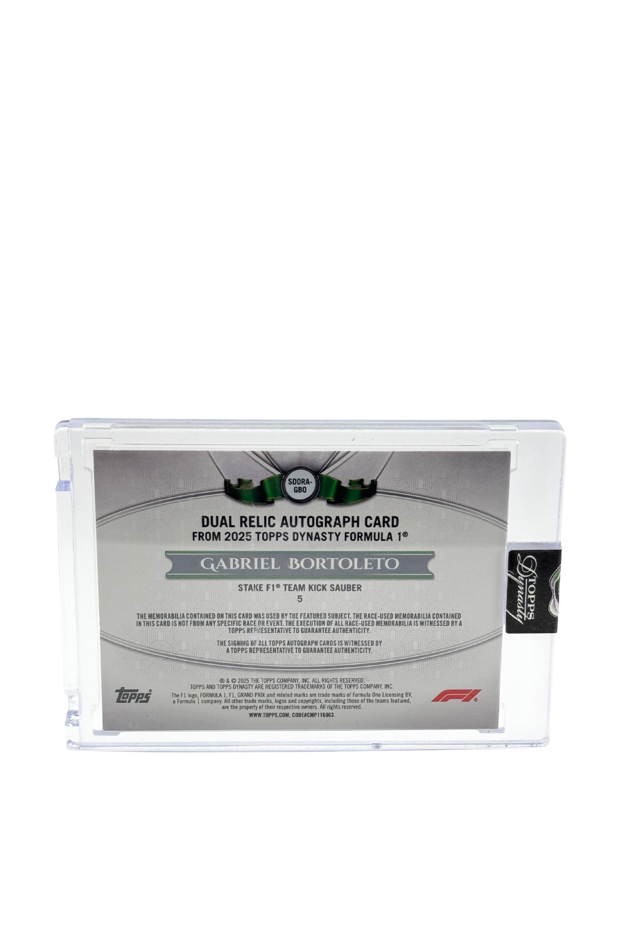 2025 Topps Dynasty Gabriel Bortoleto Duo Rookie Patch Auto #2/2