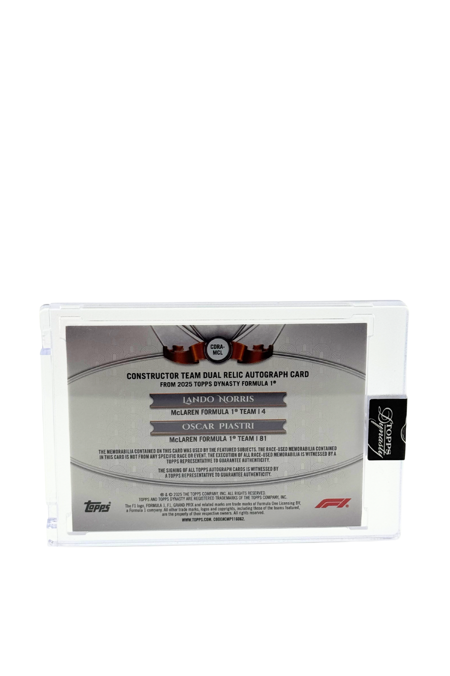 2025 Topps Dynasty Lando Norris & Oscar Piastri Dual Patch Auto #10/10