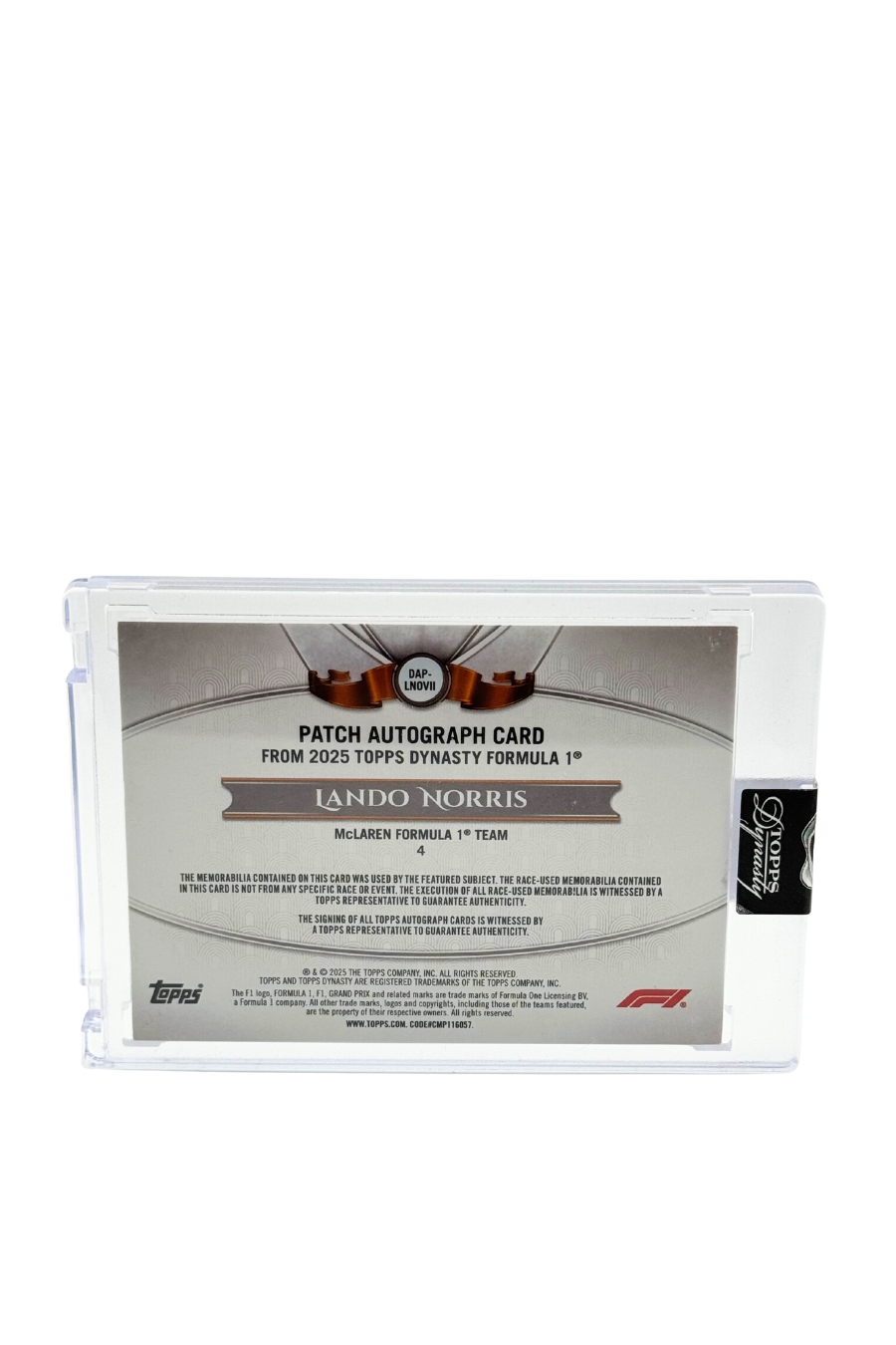 2025 Topps Dynasty Lando Norris Patch Auto #10/10