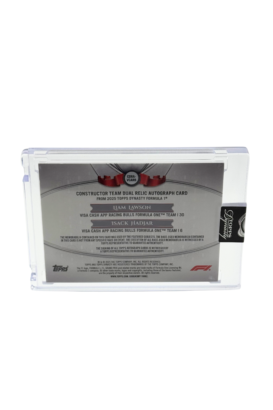 2025 Topps Dynasty Liam Lawson & Isack Hadjar Dual Patch Auto #10/10