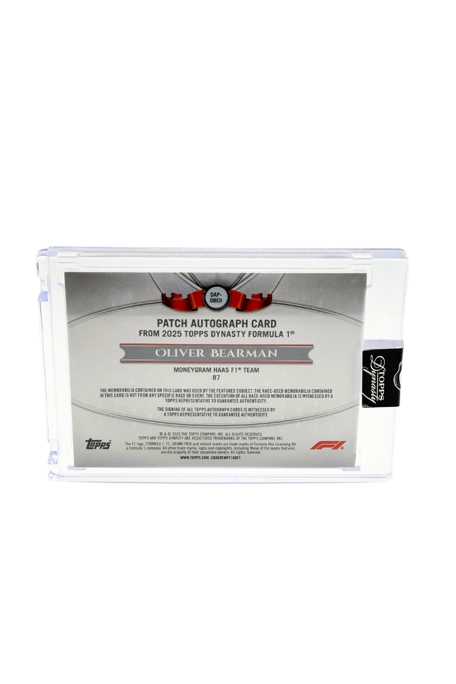 2025 Topps Dynasty Oliver Bearman Patch Auto #3/5