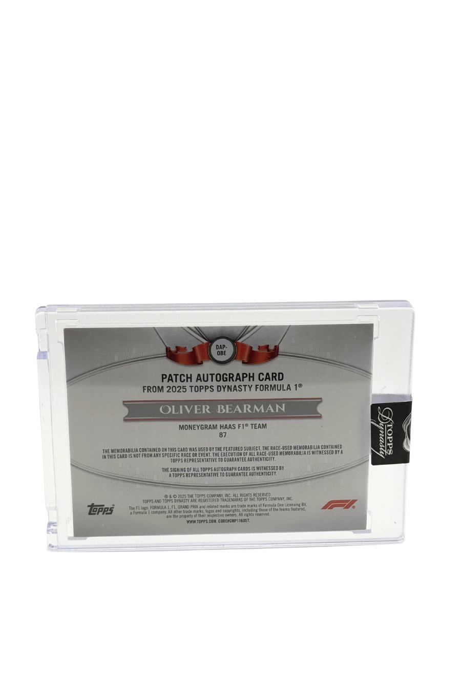 2025 Topps Dynasty Oliver Bearman Rookie Patch Auto #2/5